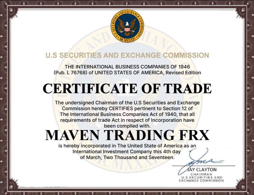 Maven Trading FRX, Certificate of Trade